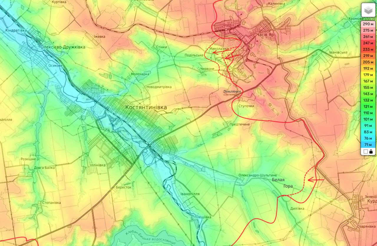 По его мнению, ВСУ уже не удастся долго держаться за Землянки. Потому что резервов на участке катастрофически не хватает и фронт рвется во многих местах. А Часов Яр - далеко не самый приоритетный для Киева участок обороны. Именно поэтому оттуда и забрали резервы, что и стало причиной схлопывания обороны города.