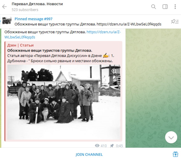 Скриншот: t.me/dyatlovpass1