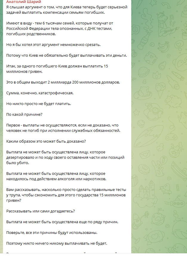 ФОТО: Скриншот https://t.me/ASupersharij
