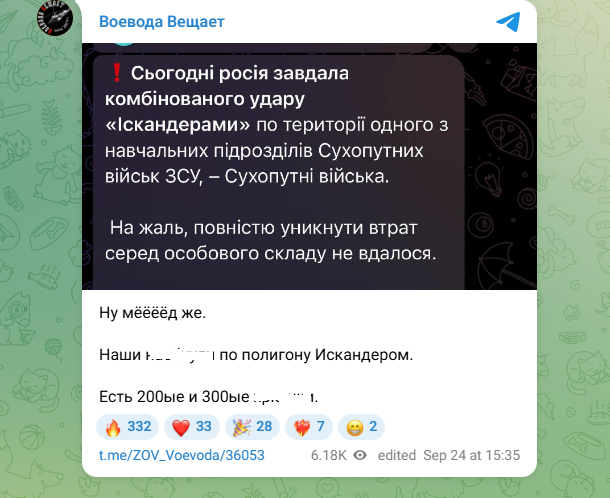 Скриншот: https://t.me/ZOV_Voevoda