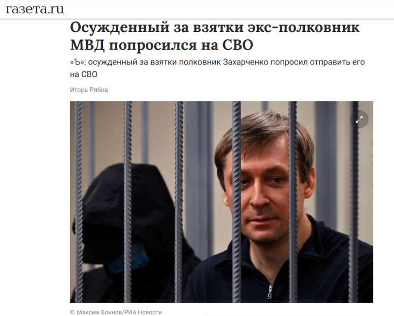 По данным адвокатов, в феврале 2024 года Захарченко вновь оказался в ШИЗО - на этот раз за попытку записаться добровольцем для участия в СВО. По их словам, осуждённый экс-полковник уже не раз обращался в военкомат, в том числе в сентябре 2023 года. В августе 2024-го он направил личное обращение президенту России Владимиру Путину, выразив желание быть полезным родине и использовать свой опыт и знания на благо государства. Однако, как следует из сообщения "Коммерсанта", военное ведомство не спешит оформлять его участие в СВО, ссылаясь на "запретное распоряжение" в правоохранительных органах.