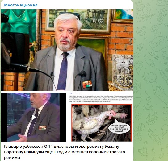 Помните главу узбекского межрегионального землячества "Ватандош" Усмана Баратова*, который по кайфу жил многие годы в России, при этом хаял русскую армию, ненавидел слово "русский", оскорблял президента России, а потом неожиданно для себя загремел в тюрьму? Так вот он ничему не научился и теперь срок ему увеличили. Рассказываем почему.