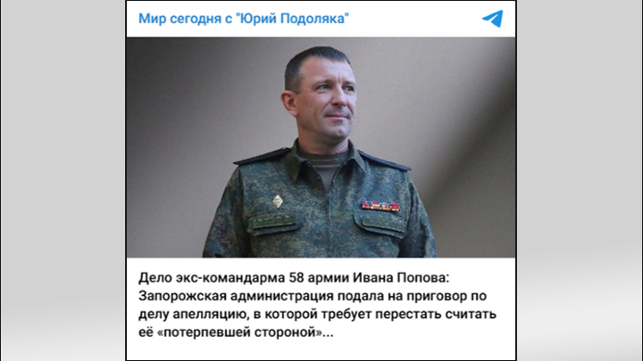 Запорожье категорически не считает себя потерпевшей стороной в деле, где речь идет о "похищенной" сумме свыше 100 миллионов рублей. Более того, в рамках судебных слушаний региональная администрация выразила благодарность Попову за его вклад в защиту части Запорожья от наступления ВСУ. После оглашения приговора запорожская власть поддержала апелляцию экс-командующего.
