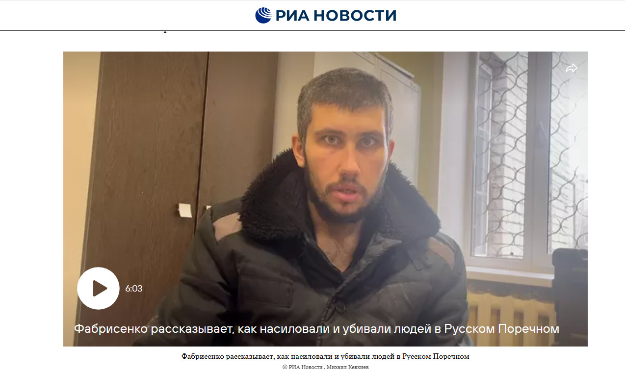 27-летнего Фабрисенко взяли в плен в конце ноября под селом Русское Поречное. С тех пор с ним работают следователи и контрразведка, раскрывая всё новые детали преступлений его и его сослуживцев.