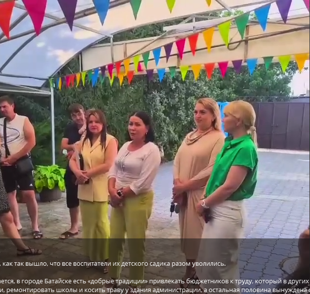 В соцсетях батайский скандал набирает обороты. В детском саду №9 "Карусель" все воспитатели подали заявление на увольнение. Как выяснилось позднее, их систематически принуждали делать чёрную работу: красить остановки, убираться в новой школе №15, рвать траву у здания городской администрации. Это стало последней каплей. За дополнительный труд людям не платили ни копейки.