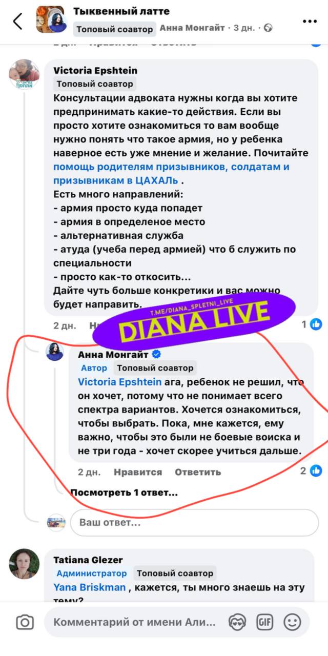 В израильской группе в соцсетях предательница задала вопрос, не стоит ли ей консультироваться с армейским адвокатом, чтобы узнать, какие опции службы существуют: