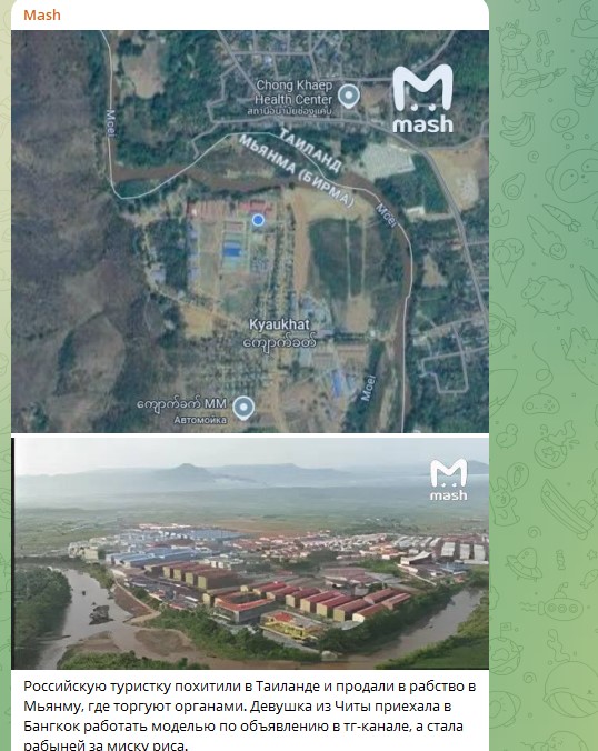 В конце сентября подобная, правда, но не такая жуткая история случилась с девушкой из Читы. Она поехала в Бангкок "работать моделью", но её также украли, перевезли в спецлагерь на границе с Мьянмой и заставили быть рабыней за тарелку риса.