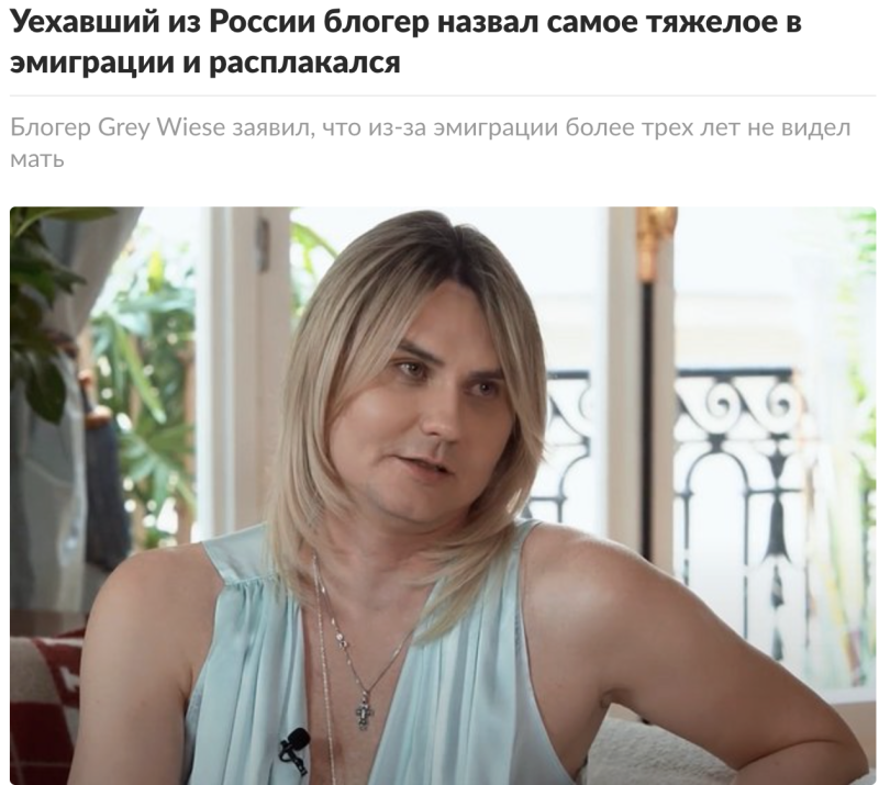 Сергей Григорьев-Апполонов, также известный как Grey Wiese, в интервью Собчак рассказал, как решил уехать из России, и рассказал о самых трудных моментах жизни за границей.