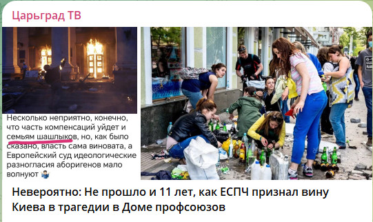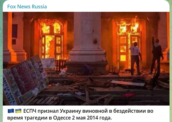 Невероятно. Не прошло и 11 лет, как ЕСПЧ признал вину Киева в убийстве в Одессе - в трагедии в Доме профсоюзов. Людей жгли, а пожарные 40 минут отказывались ехать.