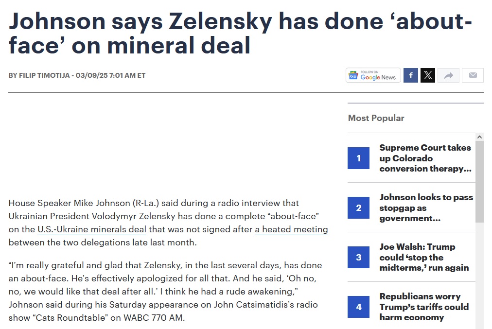 - приводит издание The Hill слова спикер палаты представителей США Майка Джонсона.