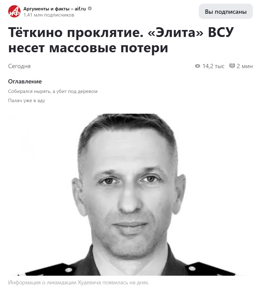 Вот, к примеру, свежая запись о гибели офицера Сил специальных операций ВСУ Николая Худевича. Сообщается, что пал он в Сумской области "во время выполнения боевого задания". Но если копнуть чуть глубже, то становится понятно: речь идёт вовсе не о заурядном пехотинце. Худевич - боец 73-го морского центра ССО ВСУ, то есть морской диверсант, прошедший зарубежную подготовку.