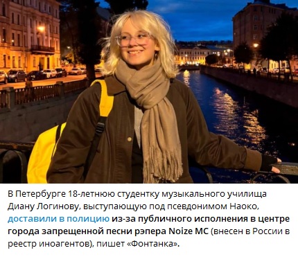 Уличной певице Наоко, настоящее имя - Диана Логинова, которая исполняла на улицах Санкт-Петербурга песни иноагентов вместе с группой Stoptime, вменили статью о нарушении общественного порядка. В соцсетях уже пишут о "зверствах режима". Но видео с выступления раскрыли правду.