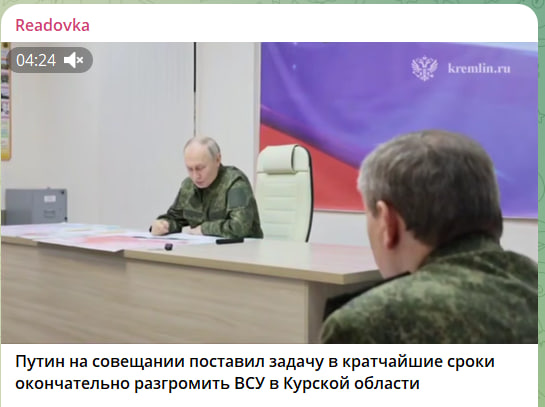 В среду, 12 марта, как ранее сообщалось, президент России Владимир Путин прибыл в Курскую область, в один из штабов управления войсками, где заслушал доклад начальника Генштаба, а после выступил сам.