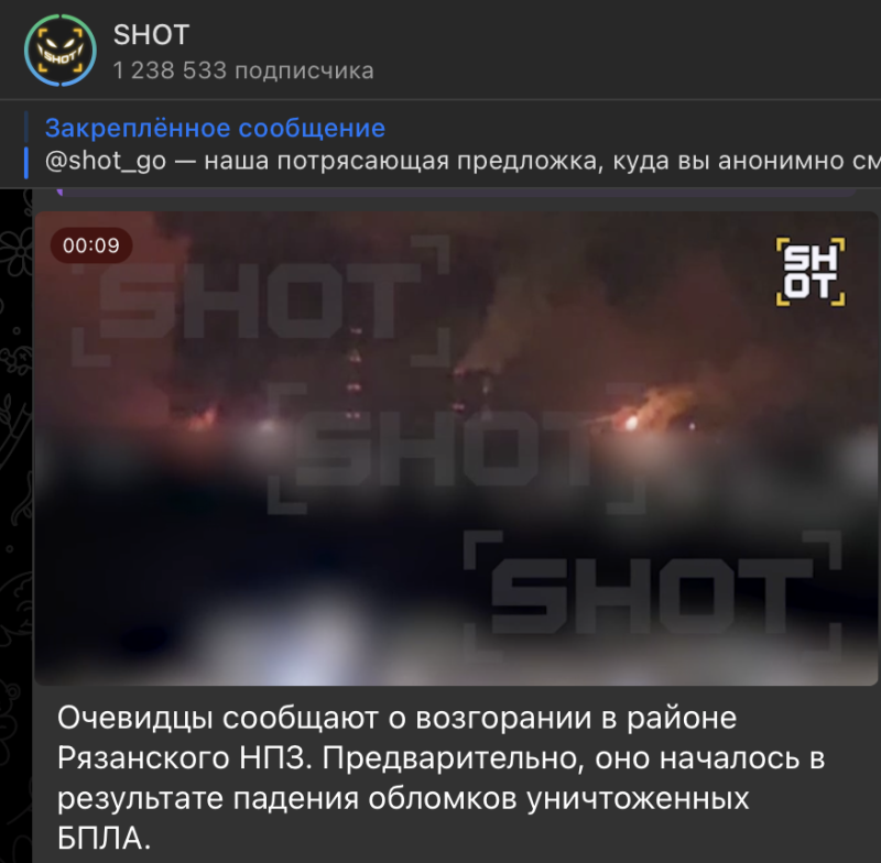 Ранее под ударом оказался нефтеперерабатывающий завод "Лукойл-Нижегороднефтеоргсинтез" в Нижегородской области. Удар беспилотника привёл к мощному пожару, который стал ещё одним тревожным сигналом для нашей нефтяной инфраструктуры. Это произошло всего через несколько дней после аналогичной атаки на рязанский НПЗ, где также произошёл крупный пожар, вынудивший предприятие остановить работу.