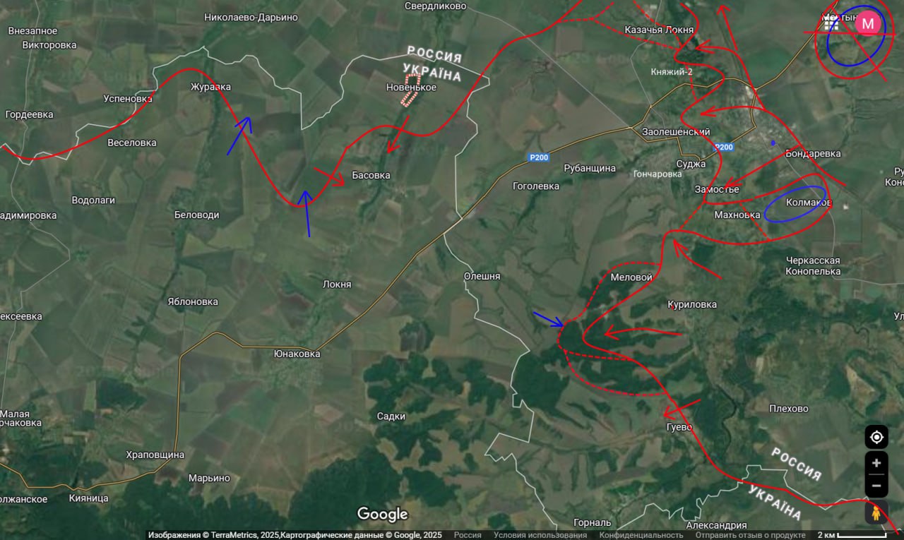 Тем временем южнее Суджи наши части пытаются выйти на южные окраины Гончаровки, продолжается зачистка холмов между Меловым и Гуево. В районе Новенького - Журавки пока без перемен.