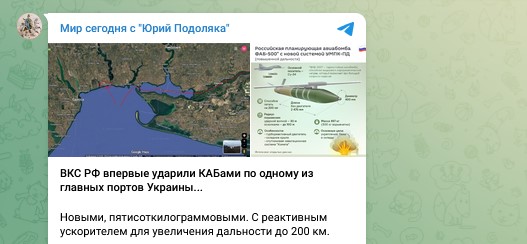 Днём 24 октября ряд украинских ресурсов сообщил данные мониторинговых каналов о том, что русские КАБы впервые стали наносить удары по Одесской области.
