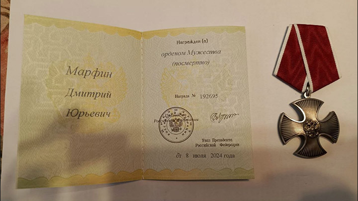 Дмитрий Марфин, пограничник и майор внутренней службы, всю свою жизнь посвятил служению Родине. После переезда в Краснодарский край и рождения дочери он вышел на пенсию, но вскоре был призван на специальную военную операцию. За свою службу он был награждён медалью "За отвагу" и орденом Мужества, который получил посмертно после гибели в Донецке в мае 2024 года.