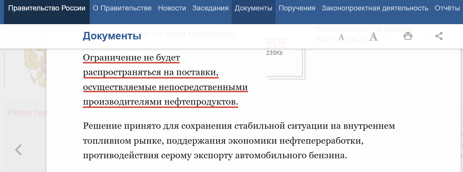 Формально правительство пыталось остановить утечку ресурса: с 1 марта частным экспортёрам запретили продавать бензин за границу. Но крупные нефтяные компании продолжали поставки. Лишь 28 июля власти пошли на полный запрет - но к тому моменту ситуация уже стала критической.