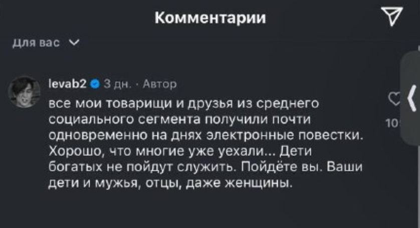 Лёва Би-2 (Егор Бортник*) в очередной раз решил выразить свою ненависть и презрение к России. Сначала он начал распространять слухи о том, что в стране якобы началась мобилизация. Он заявил, что все его друзья и знакомые из России получили электронные повестки в военкомат.