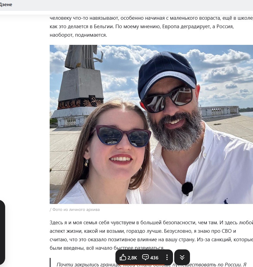 По словам бельгийца, в России он и его семья чувствуют себя в большей безопасности, чем в Европе. Он очень доволен своей жизнью и строит планы на будущее: