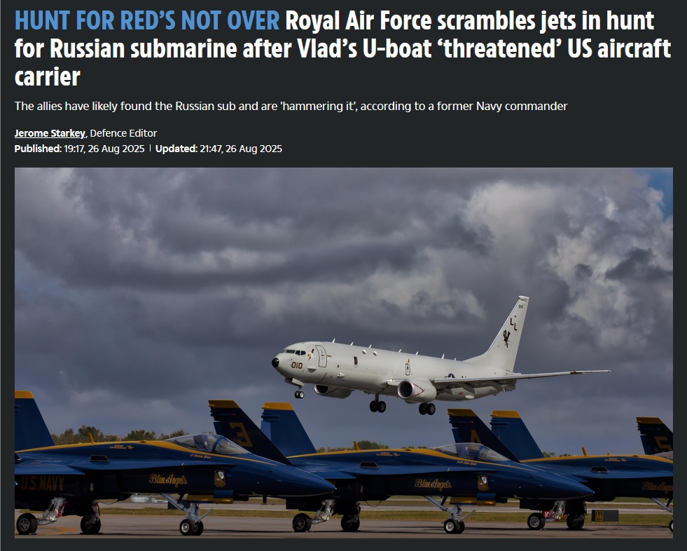 Как утверждает британское издание, в операции по поиску русской подлодки были задействованы противолодочные самолёты P-8A Poseidon ВВС Британии и США, а также норвежские ВВС. Результаты поисков не разглашаются, и можно догадаться почему.
