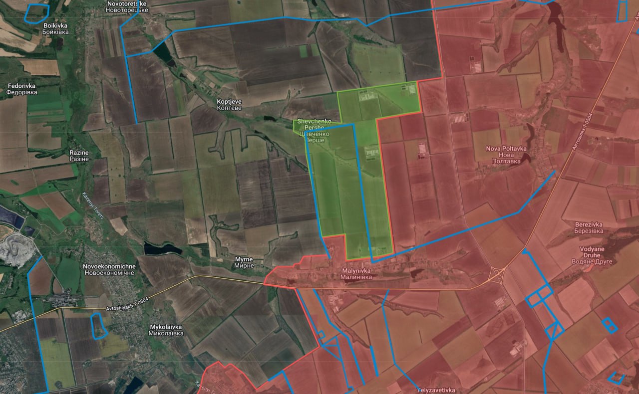 Село Шевченко Первое находится сразу после Новой Полтавки, которую взяли накануне. Продвижение в этом направлении указывает на расширение оперативного мешка к западу от Новой Полтавки и попытку разрезать оборону ВСУ в этом районе, считают военные аналитики.