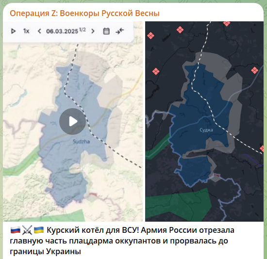 Ситуация для ВСУ стремительно ухудшается: ВС РФ наносят встречный удар у границы, угрожая взять в окружение суджанскую группировку ВСУ, смыкая горловину котла. Российские войска прорвали оборону ВСУ в районе Гуево и за несколько дней продвинулись на более чем 5 километров.
