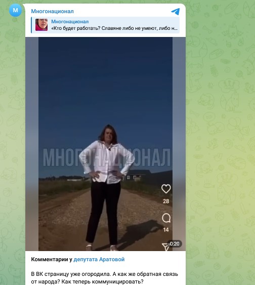 Как заметили авторы телеграм-канала "Многонационал", по обилию матерных и других грязных слов в лексиконе и "уровню аргументов" могло показаться, что это "хабалистая" женщина с зависимостями, однако это депутат от "Единой России" и "совершенно случайно" представитель застройщика "Кентавр".