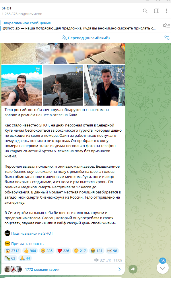 На Бали расследуют гибель русского коуча, который заявлял, что натаскивает бизнесменов в их компетенциях. Нашли тело мужчины с ремнём на шее и с пакетом на голове.