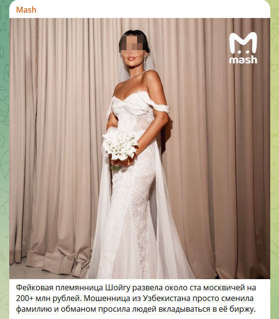 Шойгу использовали, чтобы обмануть людей на миллионы… В Москве раскрыта масштабная афера, в центре которой оказалась 27-летняя уроженка Узбекистана Шерьехон Османова. Девушка сумела втереться в доверие десятков москвичей, выдав себя за "племянницу Шойгу", и собрать с них более 200 миллионов рублей. Для этого она пошла на хитрость: официально сменила фамилию, получив документы на имя Шерье Шойгу, и на протяжении нескольких лет строила вокруг себя легенду о "семейной бирже" с гарантированной доходностью. Чтобы подцеплять доверчивых жертв на крючок, девушка придумала "секретные акции" и "гарантии возврата".