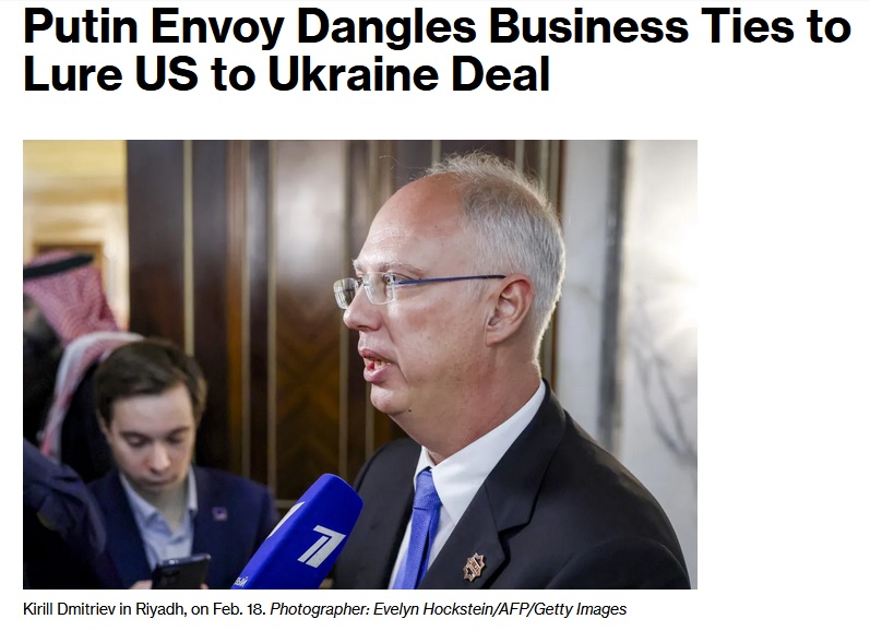 Речь идёт про главу Российского фонда прямых инвестиций (РФПИ) Кирилла Дмитриева. Bloomberg отмечает, что этот человек неслучайно вошёл в состав русской делегации в Эр-Рияде.
