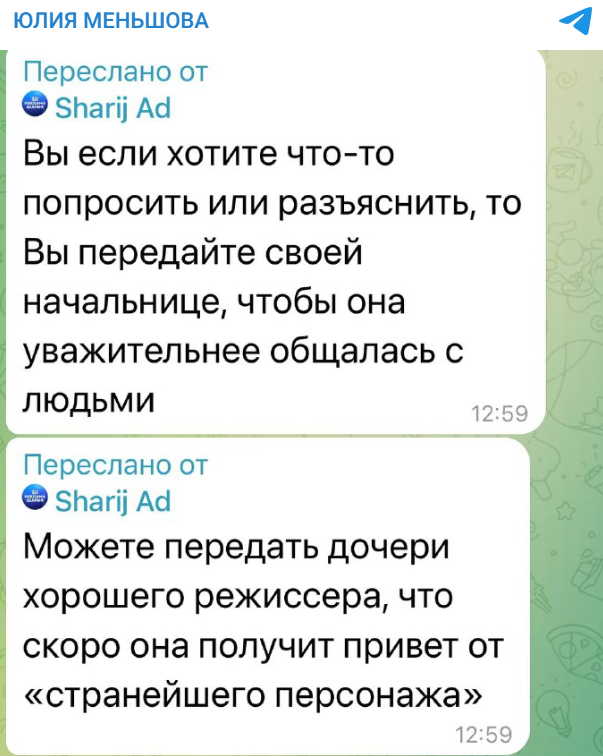 Скриншот:Telegram/ЮЛИЯ МЕНЬШОВА