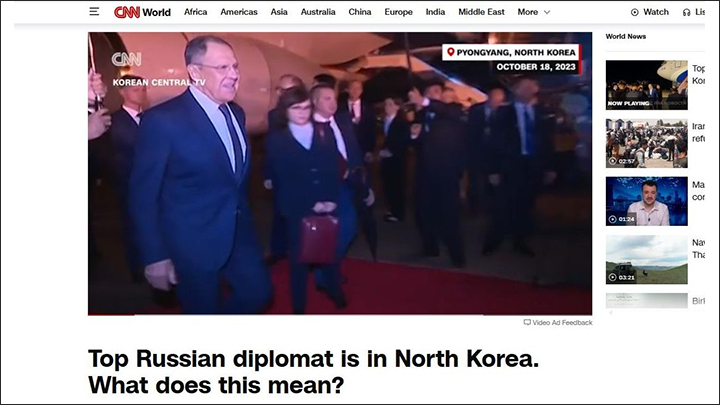 Заголовок - "Глава дипломатии России - в Северной Корее. Что это значит?" Скриншот: интернет-сайт edition.cnn.com