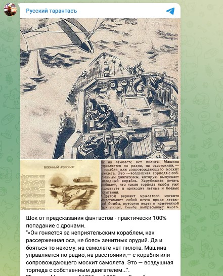 Речь идёт о записи в журнале "Техника молодёжи" №11 за 1938 год, где описано применение… дронов в боевых действиях.