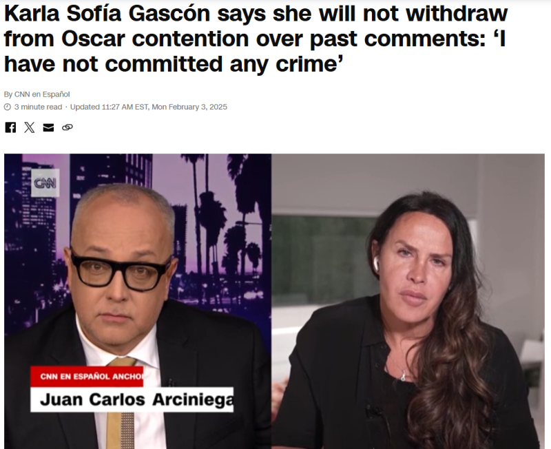 Пока зрители в гневе требуют "отменить" Карлу Гаскон и бойкотируют "Эмилию Перес", трансгендер* делает ход конём. Говорит, не будет отказываться от "Оскара", как того требуют возмущённые люди.