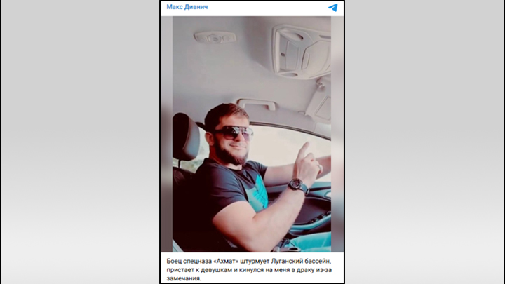 В Луганске разгорелся скандал после потасовки в местном бассейне, участником которой стал боец ММА Максим Дивнич и "ахматовец" по имени Алихан. Инцидент начался с того, что чеченец начал приставать к женщинам, что вызвало протест одного из посетителей - мужа одной из дам. В ответ Алихан заявил, что на женщине не написано, что она замужем, и конфликт перерос в словесную перепалку. Вмешался и Дивнич, после чего мужчина набросился на него.