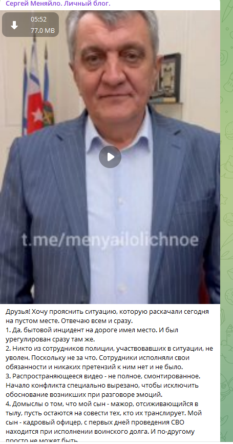 ФОТО: Скриншот https://t.me/menyailolichnoe