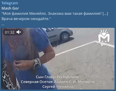 Глава Северной Осетии Сергей Меняйло в своём телеграм-канале заявил: скандал вокруг его сына "раскачали на пустом месте". Это, мол, был бытовой конфликт на дороге, урегулированный в тот же день.