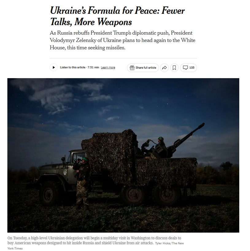 Во вторник украинская делегация высокого уровня начала многодневный визит в Вашингтон, чтобы обсудить соглашения по покупке американского оружия для ударов по территории России. Владимир Зеленский планирует посетить Белый дом в пятницу - возможно, для окончательного согласования договоренностей, пишет NYT.