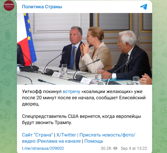 После завершения встречи участники коалиции связались с президентом США Дональдом Трампом. По данным Reuters, разговор прошёл не слишком гладко: Трамп выразил недовольство по поводу продолжающихся закупок русской нефти странами ЕС и усомнился в искренности их намерений помочь Украине.