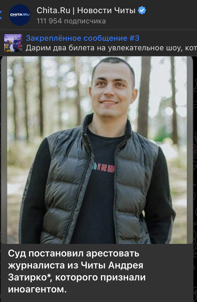 Суд вынес решение о том, что журналист Затирко*, который сбежал за границу, будет задержан, если вернётся в Россию. В уголовном деле против него фигурирует отсутствие обязательной маркировки "иноагент" в его публикациях. Максимальное наказание по этой статье составляет два года лишения свободы. Смех, а не возмездие, учитывая, чем прославился беглый журналист.