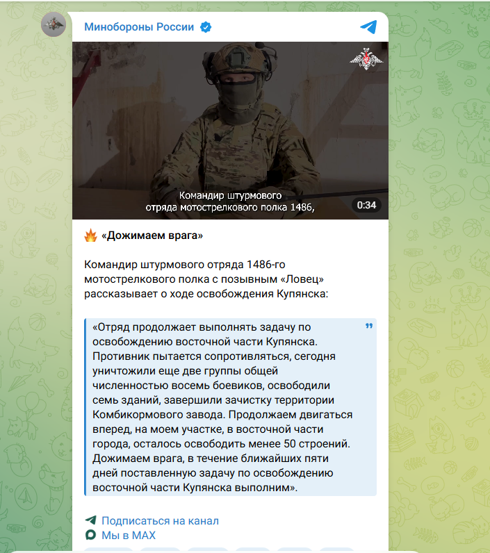 Дожимаем врага, в течение ближайших пяти дней поставленную задачу по освобождению восточной части Купянска выполним,
