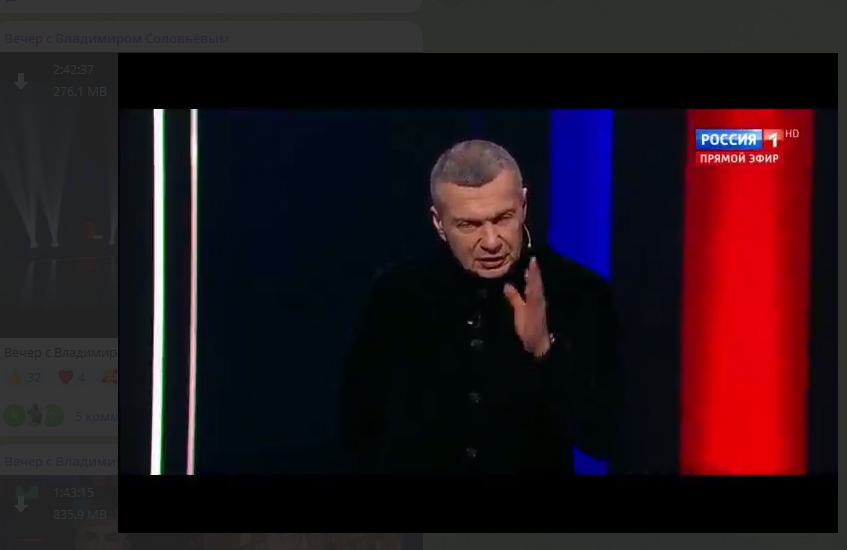 ФОТО: Скриншот https://t.me/Vecer_Vladimir_Soloviev