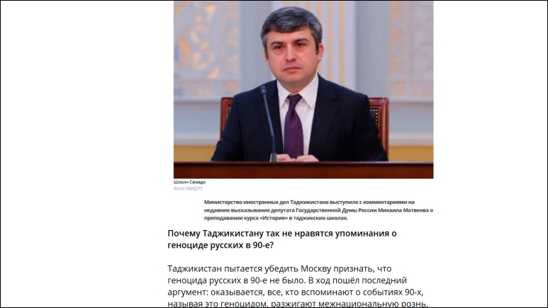 Часто ли наши таджикские коллеги вспоминают о трагических событиях 90-х годов? Тогда произошёл открытый геноцид русских, но никто в Душанбе не торопится чтить память невинно убитых людей. Более того, Душанбе отрицает геноцид и требует молчания от России.