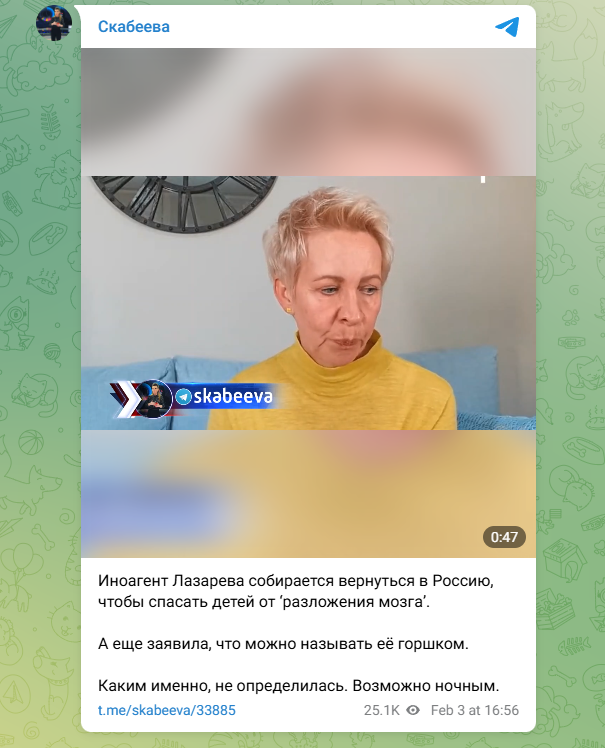 "Спасти детей от разложения мозга": Лазарева* засобиралась в Россию, заговорив внезапно про горшок