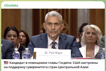 США стремятся продвигать суверенитет и территориальную целостность стран Центральной Азии - Казахстана, Киргизии, Таджикистана, Туркменистана и Узбекистана. С таким заявлением выступил кандидат в помощники госсекретаря США по делам Южной и Центральной Азии Пол Капур на слушаниях в Комитете сената по международным отношениям. Что это значит для России и стран региона, объяснил военный блогер Михаил Звинчук.