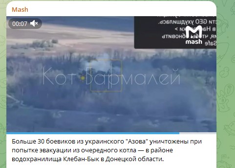 Во время попытки эвакуировать раненых боевиков "Азова"* уничтожено около 30 их сослуживцев в районе водохранилища Клебан-Бык в ДНР, сообщает канал Mash. По данным источника, дроноводы Южной группировки войск зафиксировали передвижение противника на другом берегу водохранилища. Русские разведчики узнали о готовящейся эвакуации боевиков, застрявших в котле. Они заняли позиции, подготовились, дождались прибытия эвакуационных лодок и закидали всех сбросами с дронов.