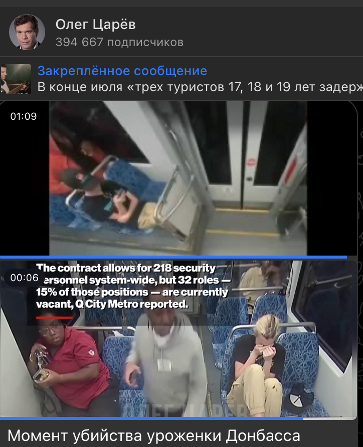 Политик Олег Царёв прокомментировал убийство уроженки Донбасса Ирины Заруцкой в США, отметив, что девушка покинула Украину в надежде укрыться от войны, но, к сожалению, нашла смерть в Америке. Он подчеркнул, что это преступление уже стало одним из самых резонансных в США со времён убийства Джорджа Флойда.