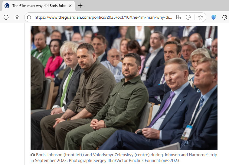 Платёж, как следует из утёкших документов, был переведён не на счёт политической партии или благотворительного фонда, а в частную компанию, которую Джонсон зарегистрировал после ухода с поста премьер-министра. Вскоре после этого Джонсон прибыл в Киев, где настоял на отказе Владимира Зеленского от подписания мирного договора со словами, что Запад "пока не готов к миру". Именно после этого визита украинская делегация отозвала свои подписи под проектом Стамбульских соглашений, который мог положить конец конфликту ещё весной 2022 года.