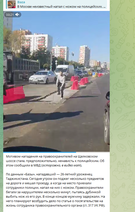 "Стреляй! Стреляй! Стреляй!": В Москве мигрант с ножом и коктейлем Молотова напал на полицейских. И даже это не самое страшное